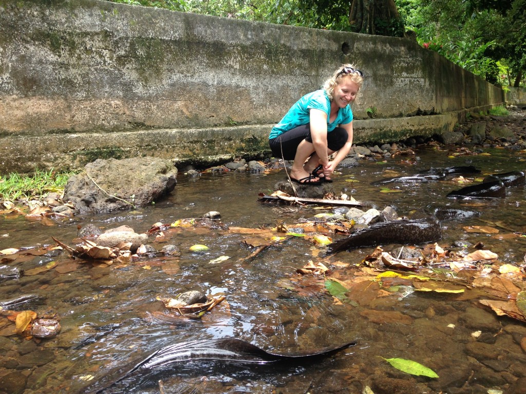 - Feed fish to the blue-eyed eels. These eels are found can only be found in Faie, Huahine. Along a freshwater stream, massive 20+ pound eels can be seen in the water. Bring some shoes you can walk through the water with and try petting these slippery eels as someone feeds them fish scraps. They will slither up on the rocks for a bite to eat before sliding back into their hiding places.